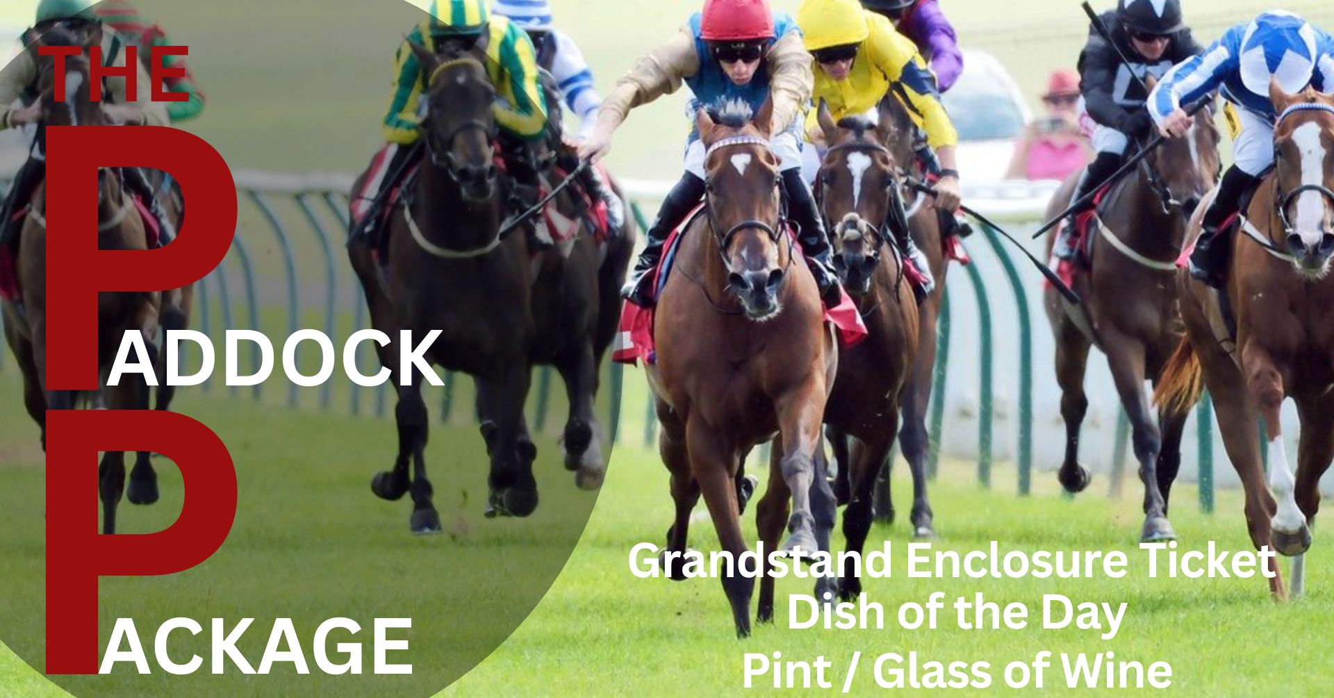 The Paddock Package includes your entry in the Grandstand Enclosure, racecard, and a voucher for a Dish of the Day.