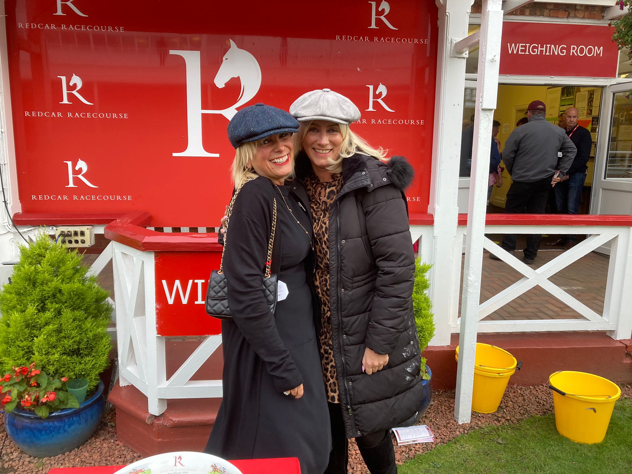 Sponsors Dawn Welsh and sister Nic, from Market Cross, along with stable lad Toby Jordan, played a blinder by wearing caps to get into the Peaky spirit!