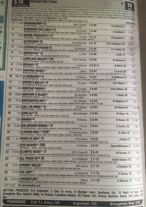 The 1989 race at Redcar saw Rouse riding against a glittering line-up of jockeys eager to win the £100,000 first prize. They included Frankie Dettori, Steve Cauthen, Walter Swinburn, Willie Carson, and Pat Eddery. Call To Arms, trained by Clive Brittain, and ridden by Michael Roberts was second.